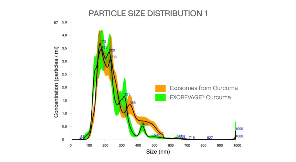 These results indicate more uniform structure of EXOREVAGE CURCUMA compared to conventional CURCUMA exosomes