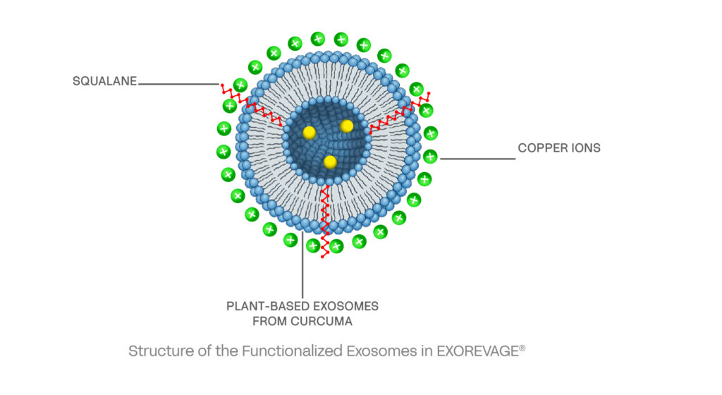 The functionalized exosomes in EXOREVAGE Curcuma have three main components with very specialized roles: